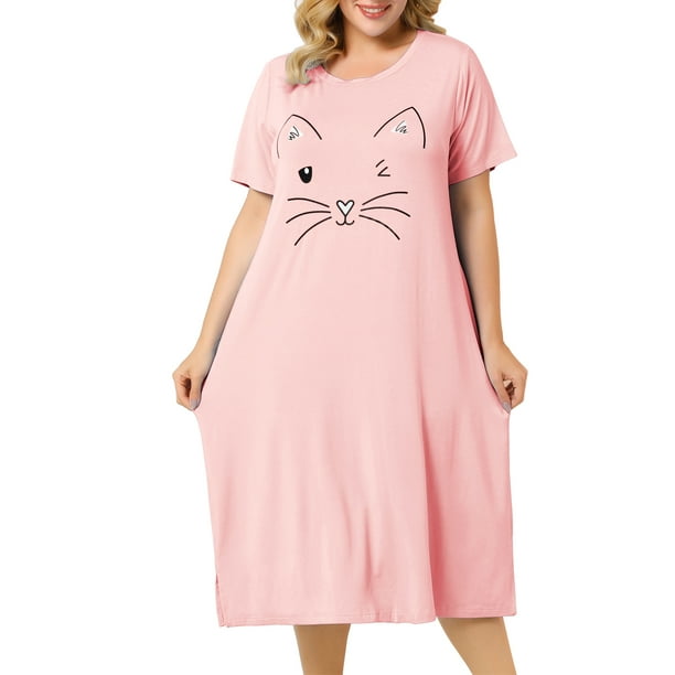 Agnes Orinda Juniors Plus Size Nightgown Cat Print With Pocket Sleep Dress Sleepwear Walmart Com